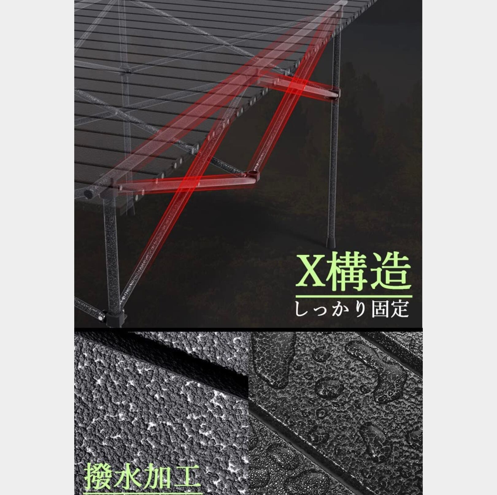・天板は軽量でサビに強いアルミ製で、 耐磨耗性と耐熱性がバツグン、撥水加工され、