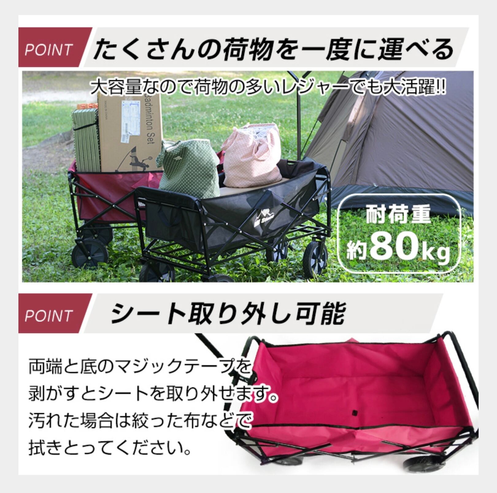 キャリーワゴン キャリーカート 折りたたみ コンパクト 耐荷重80kg ショッピングカート 荷物 移動 キャンプ 大容量 収納 運動会 海水浴 ガーデニング/園芸用品/雑貨/グッズ/庭/ベランダ/運動会/アウトドア/バーベキュー